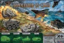 Commander-In-Chief is a fun fast-playing abstract strategy war game published by X Plus Products in which a player's Air, Land and Sea military vehicles work as a unified Armed Forces assault team to "capture" their opponent's Commander. The board consists of a traditional 8 square x 8 square checkerboard grid divided into two Land areas separated by a Sea area. Vehicles are restricted to movement within their assigned battlefields: Through the Air, On Land and/or In the Sea.