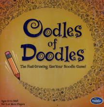 "Oodles of Doodles takes the art of doodling to a new level as you race against time, trying to get your teammates to shout out items that fit a certain category, but only you see the list of eight items you must doodle."