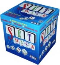 Scramble SET: Drop all 42 dice from the bag onto the table, then start calling out sets as soon as you see them. When no more sets remain, tally the number of sets for each player, then start another round. Whoever has the high score after five rounds wins.