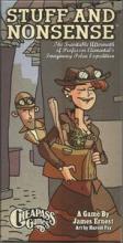 Stuff and Nonsense is "the Inevitable Aftermath of Professor Elemental's Imaginary Polar Expedition", an adventure game about never leaving London. The players move about the city, collecting artifacts and stories, and then return to the Adventurer's Club to tell made-up stories of adventure. This game plays something like a board game, though the board is made entirely of cards. The mechanics revolve around collecting sets of cards, while trying to avoid meeting Professor Elemental, and deciding which destinations to pretend to return from. The cards are filled with humorous text and whimsical illustrations by Harold Fay.